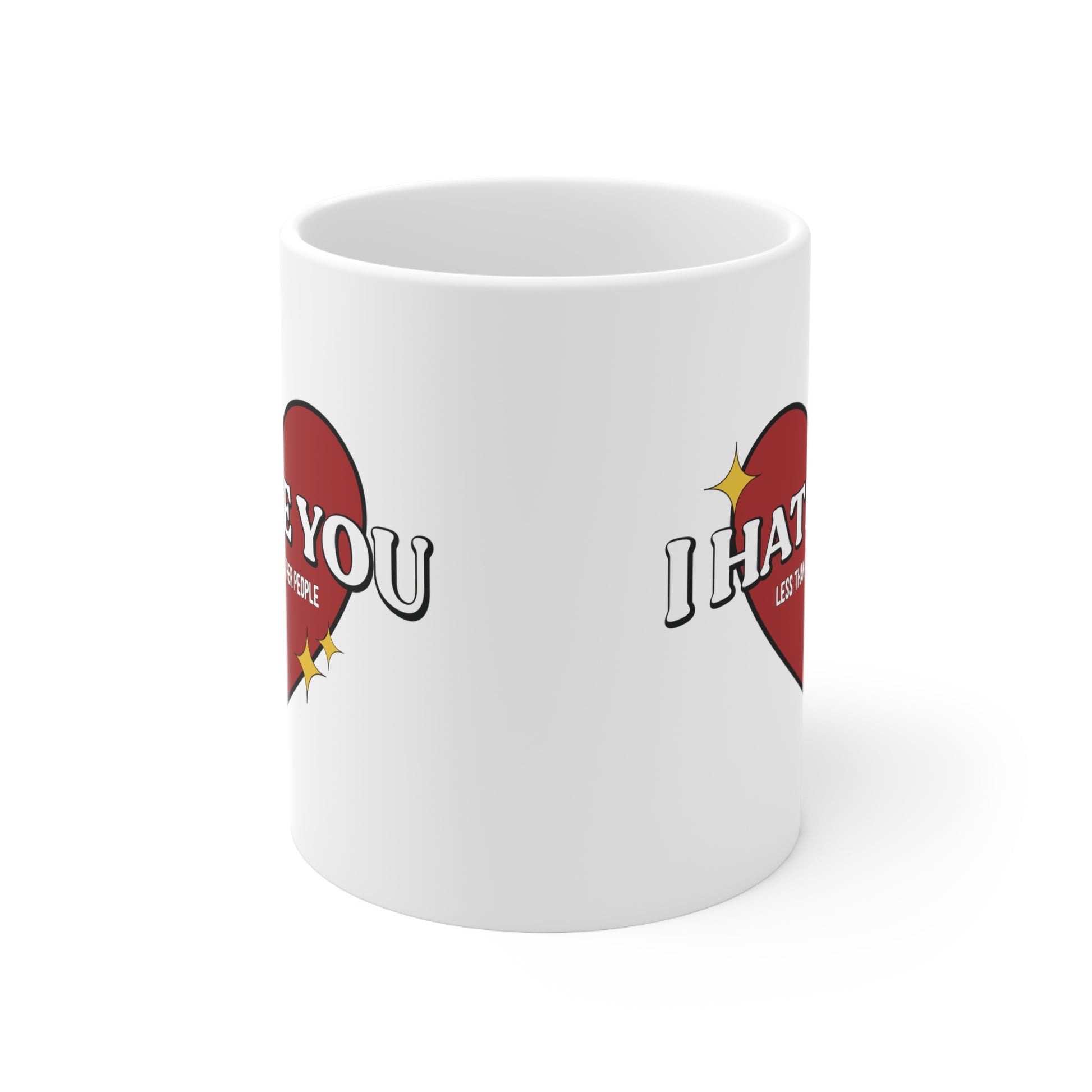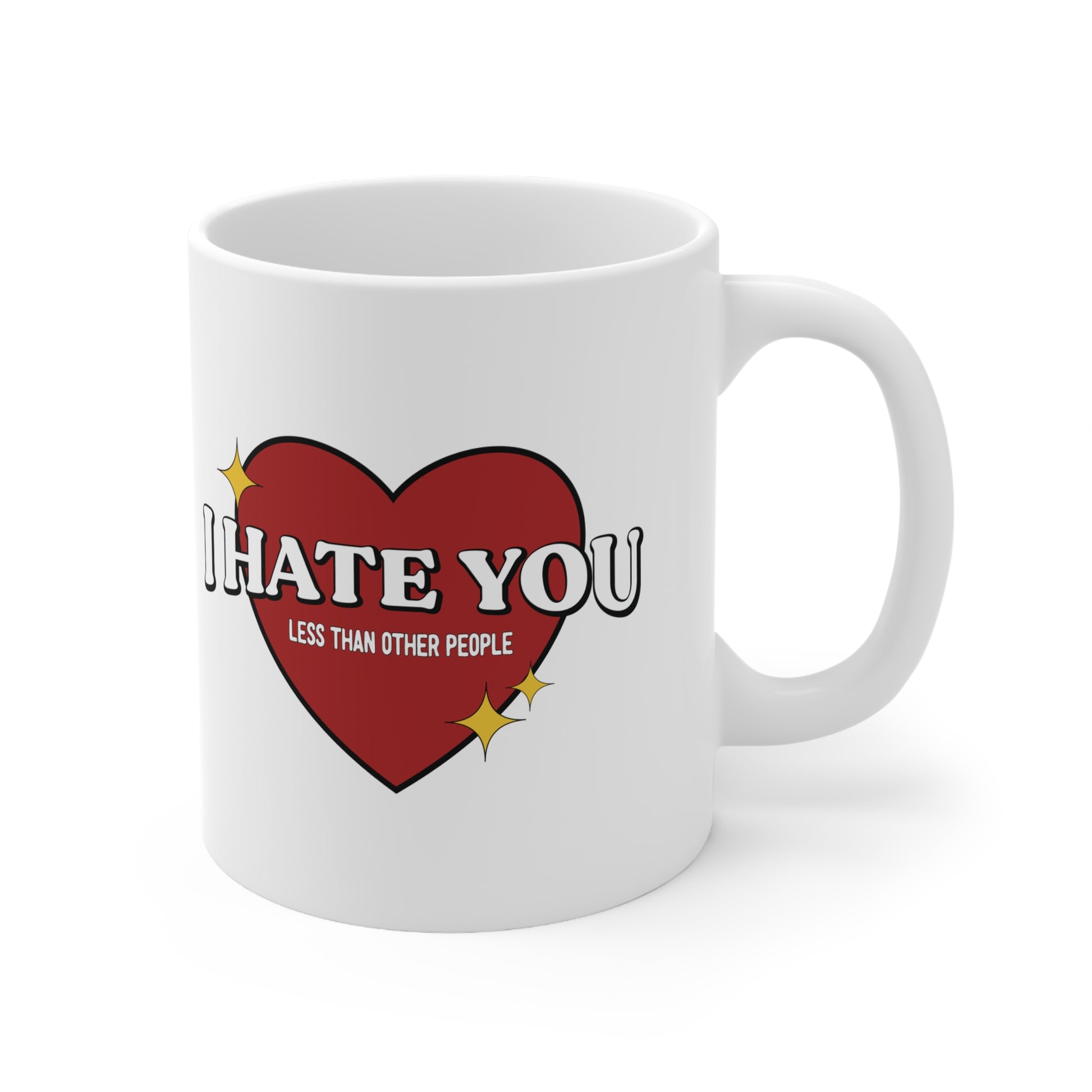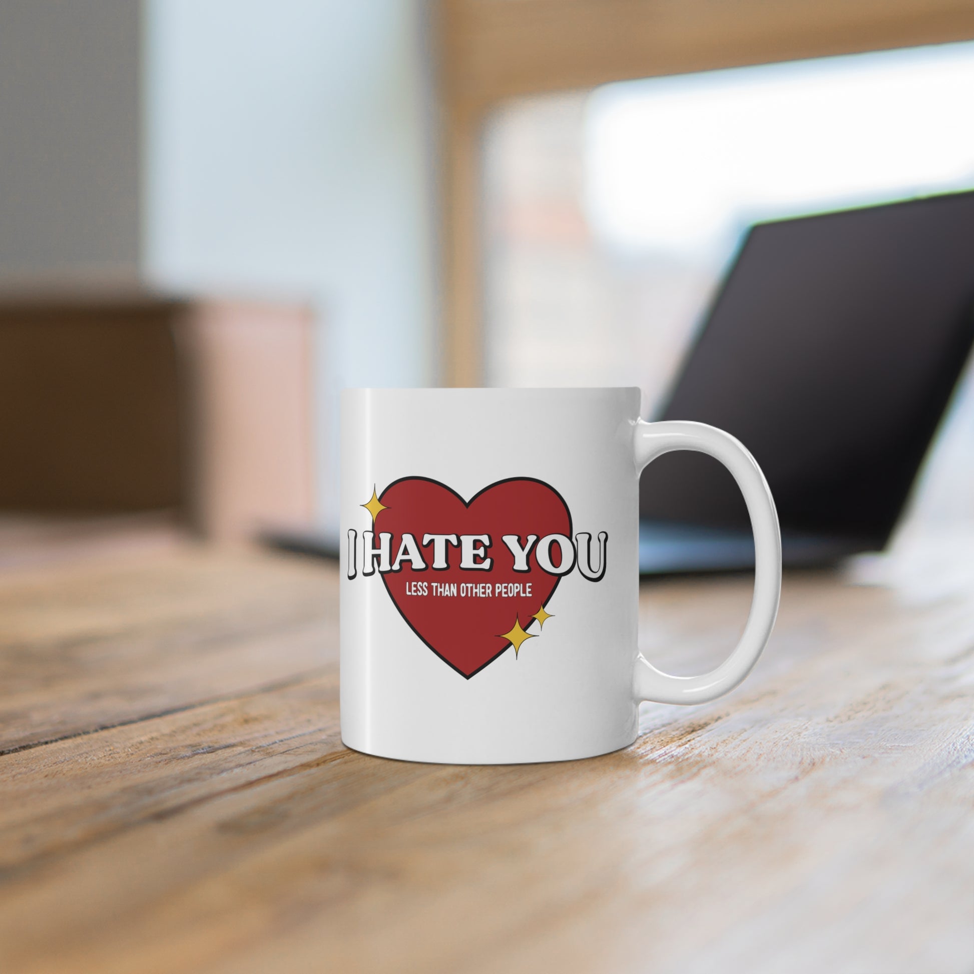 Let’s face it—people are a lot. But amidst the chaos, there’s that one person who you hate just a little less. This mug is for them: the MVP of your barely-tolerable list. Whether it’s a partner, a bestie, or that one coworker who’s slightly less insufferable than the others, this mug speaks the ultimate truth. Because saying, “I like you” is basic, but “I hate you less” is pure, unfiltered, elite-level affection. Perfect for mornings where coffee’s not enough to deal with the world (but they almost are).